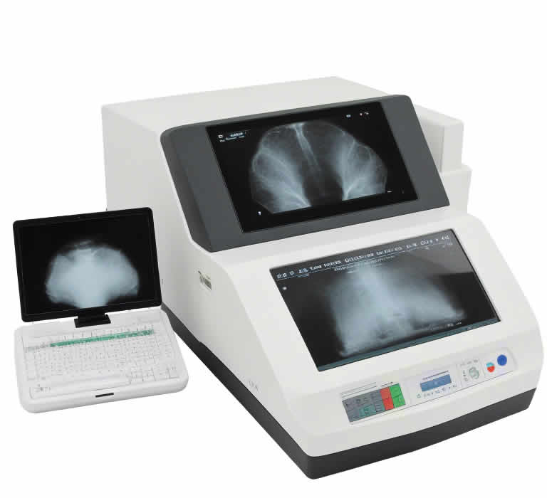 倍率计工作原理:把标准玻璃线纹尺放到生物显微镜工作台上,升降生物显微镜工作台,直到在目镜处看清楚标准玻璃线纹尺。这个时候把目镜拔出来插上倍率计,利用光学镜头把生物显微镜物镜下的标准玻璃线纹尺图像成像在光电耦合传感器,经过软件成像在计算机界面上,这时用平行线测量功能先后准确瞄准标准玻璃线纹尺的两条刻线,红色数字显示出就是测量值,根据校准规范减去名义值然后除以其间隔值,就是生物显微镜放大倍率了。